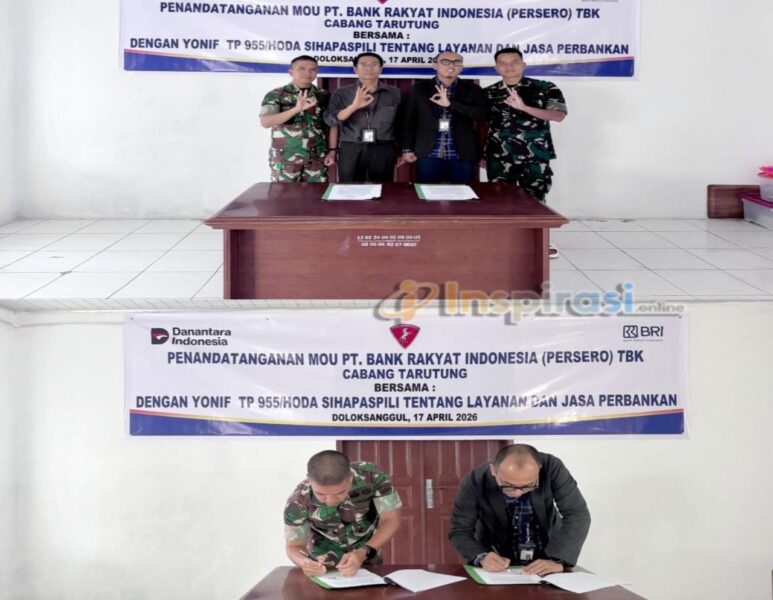 HUMBAHAS – Bank Rakyat Indonesia (Persero) Tbk Kantor Cabang Tarutung resmi menjalin kerja sama dengan Batalyon Yonif TP 955/Hoda Sihapaspili (HS) melalui kegiatan penandatanganan perjanjian yang berlangsung pada 17 April 2026 di Doloksanggul.