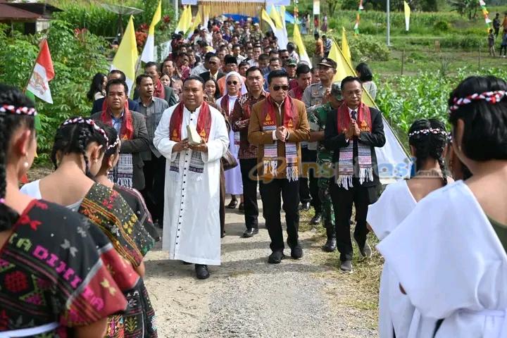 “Terimakasih atas kehadiran pak Bupati Humbang Hasundutan dan rombongan dalam pemberkatan Gereja Katolik ini. Doa kita bersama, berkat Tuhan mengalir kepada pak Bupati Humbang Hasundutan, untuk melayani masyarakat” doa RP Yanuarius Berek SVD.