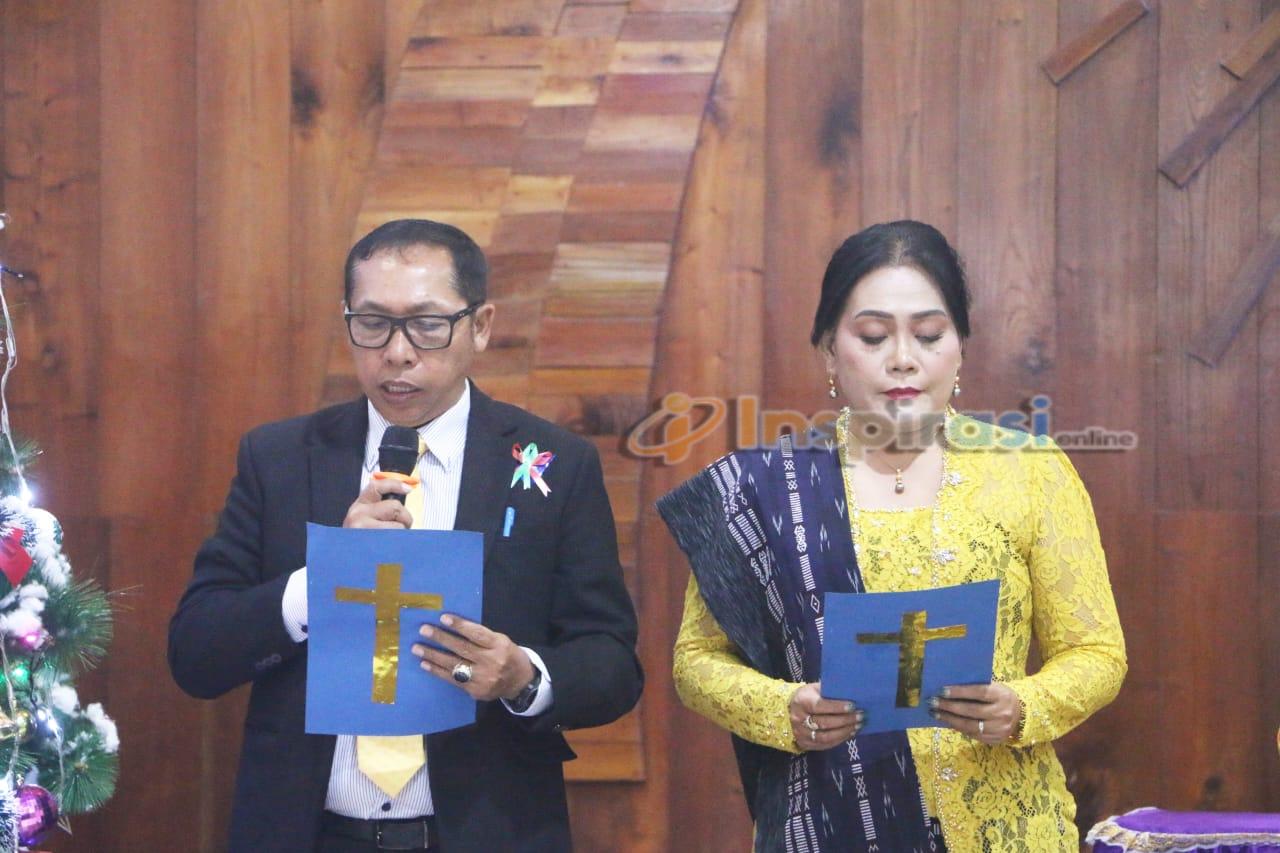 TAPUT – Bupati Tapanuli Utara Dr. Jonius Taripar Parsaoran Hutabarat, S.Si., M.Si., didampingi Ketua TP PKK Neny Angelina JTP Hutabarat serta para pimpinan perangkat daerah menghadiri Perayaan Natal Oikumene Kecamatan Pangaribuan dengan mengangkat tema “Allah hadir untuk menyelamatkan keluarga” (Matius 1:21–24) yang berlangsung di Gereja HKBP Pakpahan, Pangaribuan, (Senin, 8 Desember 2025).