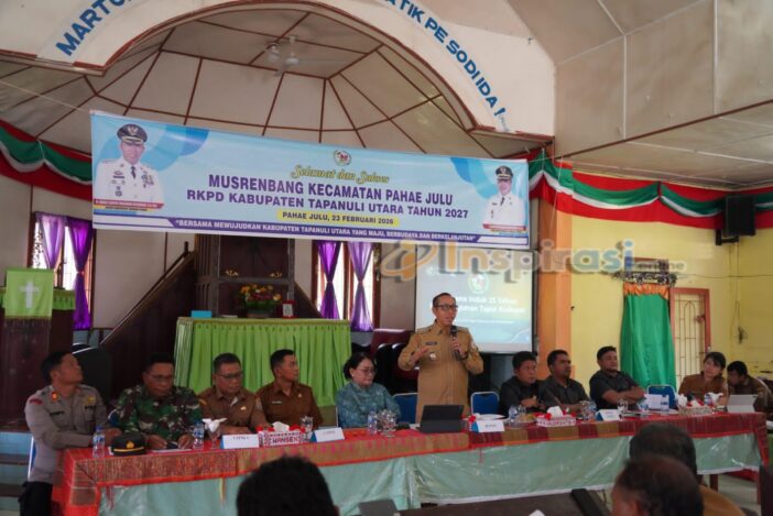 TAPANULI UTARA – inspirasi.online ||Bupati Tapanuli Utara Dr. Jonius Taripar Parsaoran Hutabarat, S. Si., M. Si didampingi Ketua TP PKK Ny. Neny Angelina JTP Hutabarat secara resmi membuka Musyawarah Perencanaan Pembangunan (Musrenbang) Kecamatan Pahae Julu yang dilaksanakan di Gereja HKBP Lumban Garaga, Pahae Julu, Senin (23/2/2026).