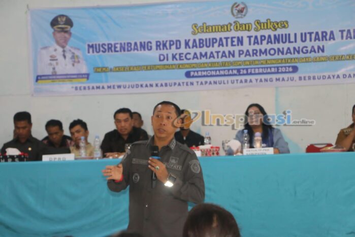 TAPANULI UTARA – inspirasi.online ||‎Bupati Tapanuli Utara, Jonius Taripar Parsaoran Hutabarat, S.Si., M.Si menegaskan arah pembangunan Kabupaten Tapanuli Utara ke depan akan difokuskan pada tiga aspek utama, yakni penguatan sumber daya manusia (SDM), pengembangan sektor pertanian, serta pembangunan berbasis budaya dan pariwisata yang disampaikan pada saat Musyawarah Perencanaan Pembangunan (Musrenbang) Kecamatan Parmonangan yang dilaksanakan di HKBP Parmonangan, Kamis (26/2/2026).