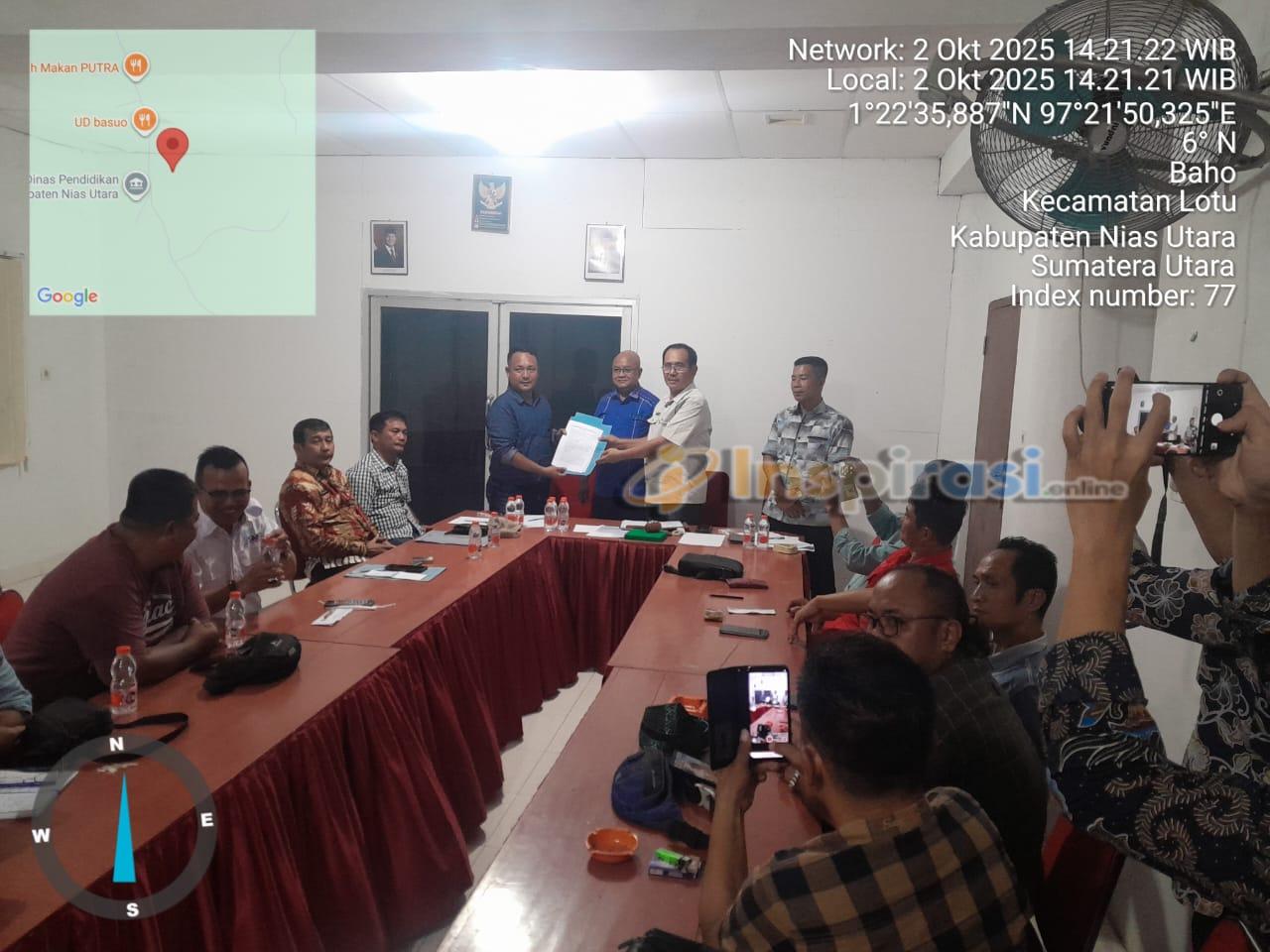 NIAS UTARA – Ketua DPRD Nias Utara, Ya’aman Telaumbanua, bersama anggota Komisi II DPRD menerima audiensi dari Aliansi Gerakan Rakyat Nias Utara (GRANAT) di ruang rapat Komisi II DPRD, Kamis (2/10/2025). Pertemuan ini membahas sejumlah persoalan penting yang tengah menjadi perhatian masyarakat, terutama kelangkaan LPG 3 Kg di wilayah Nias Utara.