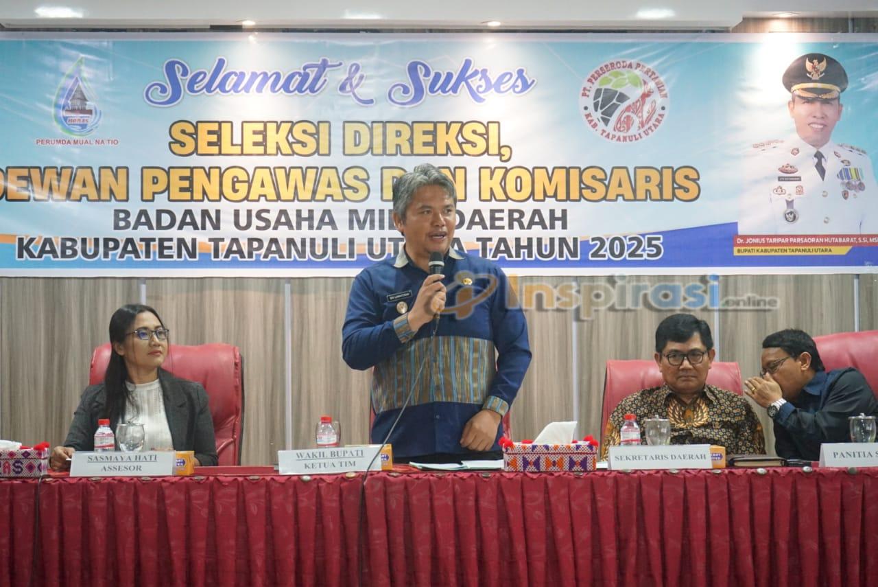 Seleksi yang berlangsung selama dua hari mulai tanggal 2 hingga 3 Oktober 2025 diikuti 24 peserta untuk mengisi berbagai posisi di BUMD. Tahapan seleksi meliputi ujian psikotes, ujian tertulis, serta penulisan dan presentasi makalah pada tahap berikutnya. Tim Seleksi dipimpin Wakil Bupati Tapanuli Utara sebagai Ketua, dengan anggota Chandra Situmeang, Waringin Hutabarat, Masril Tua Rambe, serta RR. Sasmaya Hati sebagai psikolog/asesor.